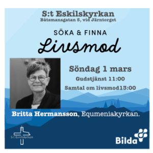 Samtal med Britta Hermansson om att söka Livsmod + Lägg till i Google Kalender + iCal / Outlook export 00 dagar 00 timmar 00 minuter 00 sekunder Datum mar 01 2026 Tid 13:00 - 14:30 Etiketter Marknadsför Platser S:t Eskilskyrkan Kategori Dialog / Möte med / Föreläsning Dela det här evenemanget
